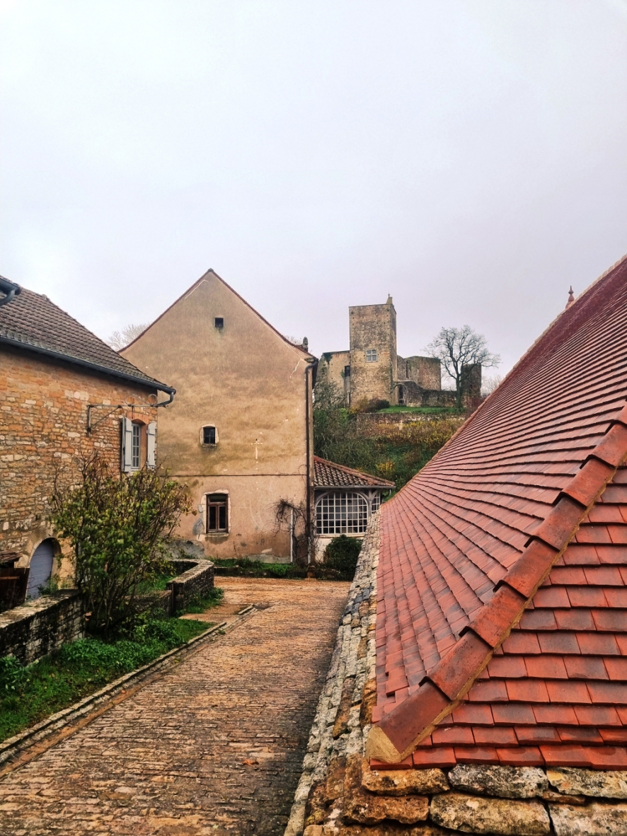 Après différentes dégustations, le petit groupe a déjeuner à la maison des vins très bonne ambiance et bon repas. Malgré le mauvais temps nous sommes montés au Mont Romain mais dommage pour la vue à cause du brouillard. Ensuite visite d'un village médiéval très joli à Brancion.